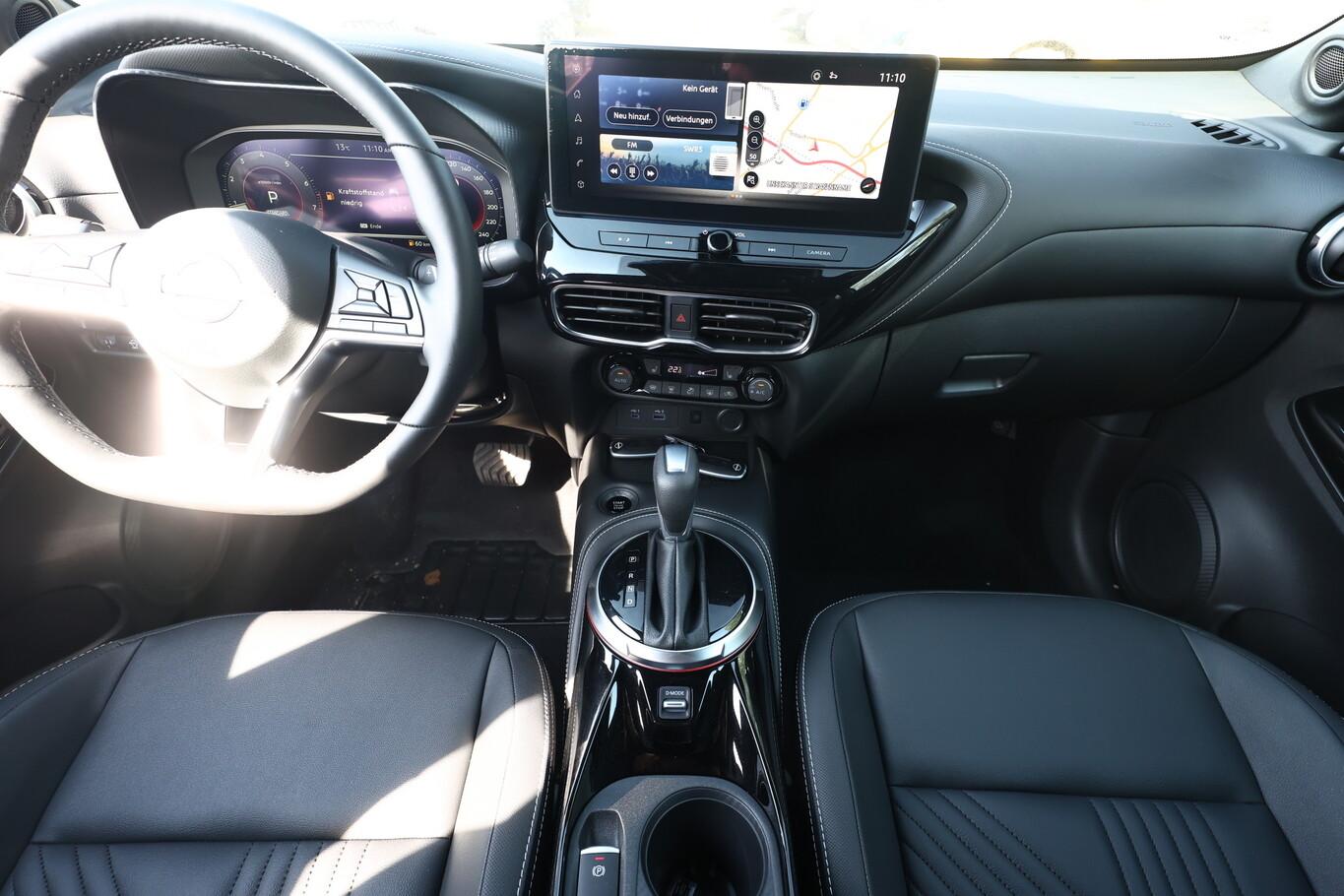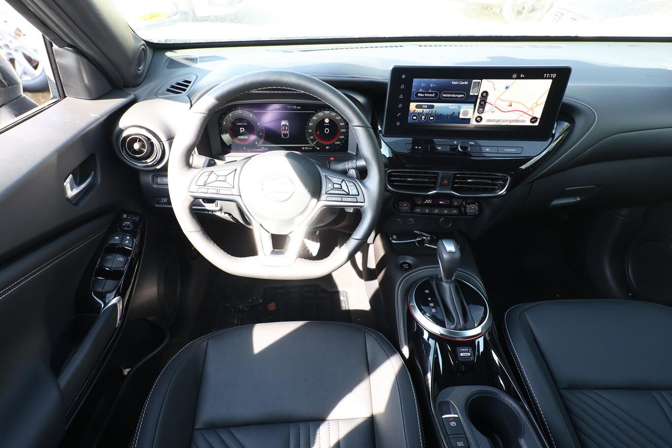Ausstattungs-Paket: Nissan Connect Navigationssystem, Außenspiegel elektr. anklappbar, Außenspiegel heizbar, Auto-Hold-Funktion, Einschaltautomatik für Fahrlicht, Fahrassistenz-System: Kreuzungsassistent, Fahrassistenz-System: Stauassistent, Gurtwarnanlage, Induktionsladeschale für Smartphone, Klimaautomatik, LED-Heckleuchten, LED-Tagfahrlicht, Lenkrad heizbar, LM-Felgen 19 Zoll, Nebelscheinwerfer LED, Notbrems-Warnblinkautomatik, Reifen 225/45 R19, Scheibenwischer mit Regensensor, Sitzbezug / Polsterung: Kunstleder, Sitzheizung vorn, USB-Schnittstelle, Technologie-Paket Getriebe Automatik (Pro Pilot-Paket / Fahrassistenz-System: Fußgängererkennung / Around View Monitor (360° Umgebungsansicht) / Geschwindigkeits-Regelanlage (Tempomat) mit Abstandsregelung / Kamerasystem Around View / Fahrassistenz-System: Totwinkel-Assistent / Einparkhilfe vorn und hinten / Fahrassistenz-System: Park-Assistent mit 360° Bewegungssensoren / Fahrassistenz-System: aktiver Spurhalteassistent, mit korrigierendem Bremseingriff / Fahrassistenz-System: Müdigkeitserkennungs-Sensor / Fahrassistenz-System: Querverkehrs-Assistent Heck (Rear Cross Traffic Alert, RCTA)), Anti-Blockier-System (ABS) (Elektr. Bremskraftverteilung (EBD)), Lenkrad (Leder) mit Multifunktion (Audio-/Bordcomputerbedienung am Lenkrad), Außenspiegel elektr. verstellbar (Blinkleuchte in Außenspiegel integriert), Fahrassistenz-System: Autonomer Notbrems-Assistent (Fahrassistenz-System: Fußgängererkennung), 6 Lautsprecher, Abdeckkappen Außenspiegel Schwarz, Dachhimmel schwarz, Innenspiegel mit Abblendautomatik, Instrumentenanzeige TFT-Farbdisplay (12,3 Zoll), Karosserie: 5-türig, Motor 1,0 Ltr. - 84 kW 12V KAT, Otto-Partikelfilter (OPF), Parkbremse elektrisch, Radioempfang digital (DAB+), Schalt-/Wählhebelgriff Leder, Sitz vorn links höhenverstellbar, Steckdose (12V-Anschluß), Touchscreen-Farbdisplay (12,3 Zoll), Smartphone Schnittstelle (Apple CarPlay & Android Auto), Antriebsart: Frontantrieb, Elektron. Stabilitäts-Programm (ESP), Getriebe 7-Gang - Doppelkupplungsgetriebe DCT, Airbag Beifahrerseite abschaltbar, Airbag Fahrer-/Beifahrerseite und Seitenairbag vorn, Fensterheber elektrisch vorn + hinten, Isofix-Aufnahmen für Kindersitz, Kopf-Airbag-System, Mittelarmlehne vorn, Rücksitz geteilt/klappbar, Schließ-/Startsystem intelligent key, Verglasung hinten abgedunkelt, Fahrmodusschalter, Fahrassistenz-System: Berganfahr-Assistent, Fahrassistenz-System: Verkehrszeichenerkennung, Fahrassistenz-System: Sicherheitssystem ERA GLONASS mit automatischem Notruf, Fahrassistenz-System: Fernlichtassistent, Scheinwerfer LED, Reifendruck-Kontrollsystem, Start-Stop-Knopf, Start/Stop-Anlage